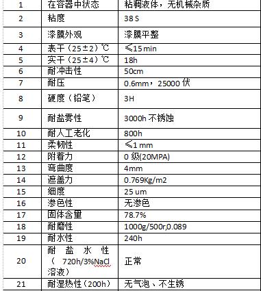 雙組份涂料;符合防腐技術行業(yè)標準:HGT4077-2009要求,漆膜厚度僅0.6mm表干時間不大于15min,灰色,0.6mm厚度耐壓25000伏,人工老化800h,耐鹽霧3000h,可帶銹施工,無需噴砂除銹,直接噴涂即可適用于各種金屬表面、塑膠表面、水泥表面,在各種車輛、電器設備、機械工業(yè)、航空航天、建筑材料等領域.